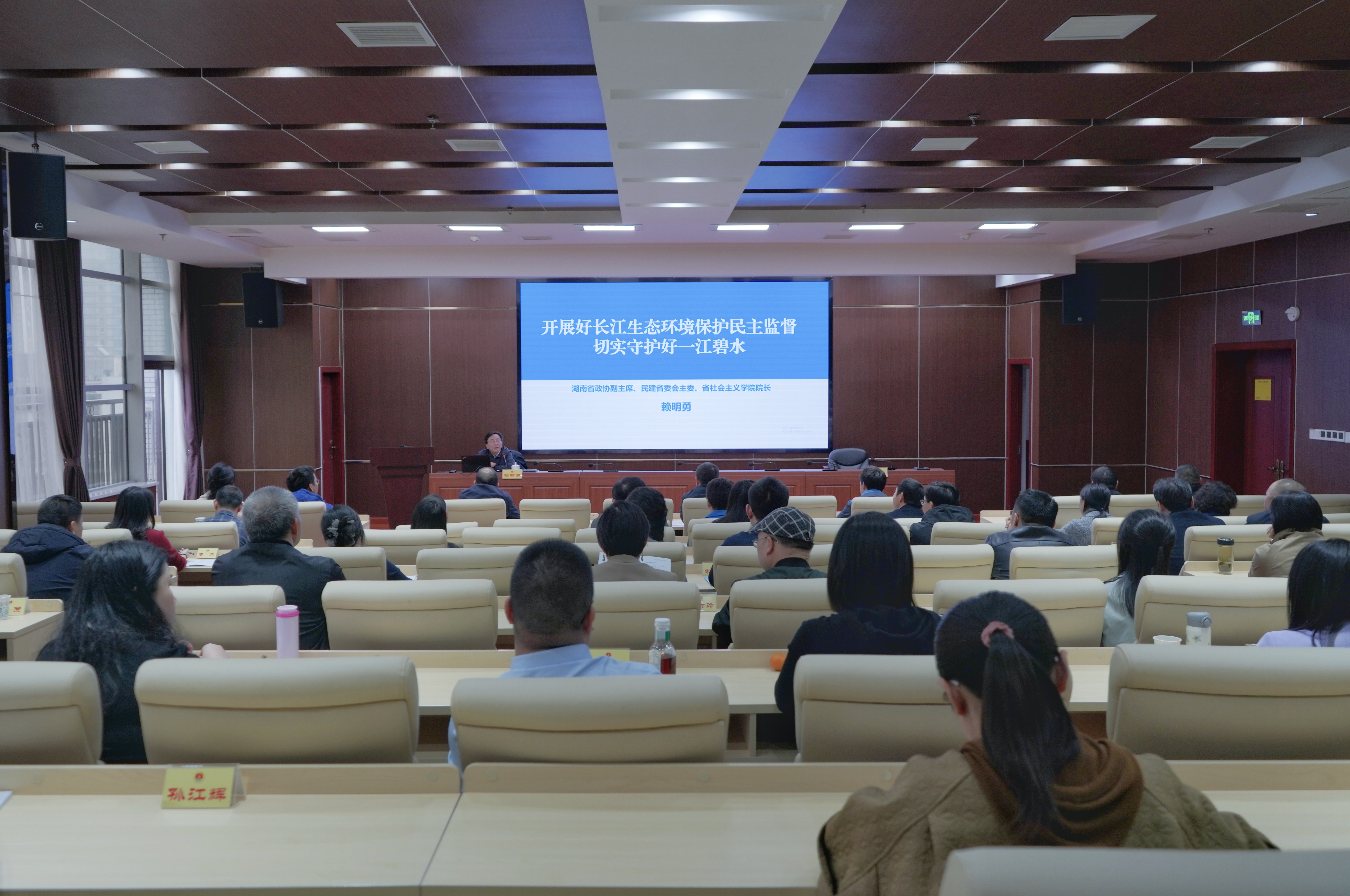 11月15日下午,省政协副主席、民建湖南省委会主委、省社会主义学院院长赖明勇为第24期民主党派工作骨干进修班学员作题为《开展好长江生态环境保护民主监督切实守护好一江碧水》的专题辅导。省委统战部副部长、省社会主义学院党组书记符俊根主持。